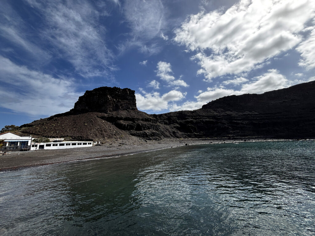 Etwas wilder, aber herrlich einsam: Playa Guayedra, nur zu Fuß erreichbar, belohnt mit schwarzem Sand, tosendem Meer und dem Gefühl, ein wenig allein auf der Welt zu sein.