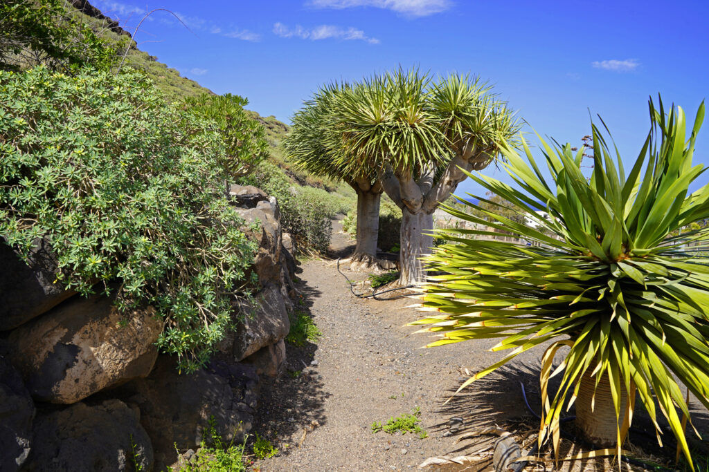 Der Aufstieg zum Cruz de las Nieves oberhalb des Ortes führt über schmale Pfade, gesäumt von Kakteen, Drachenbäumen und stacheligen Fantasiegewächsen, die meiner Tochter spontan Namen wie „Drachensträucher“ verleihen. Man könnte meinen, die Natur habe hier ihren skurrilen Einfall ausgekostet.
