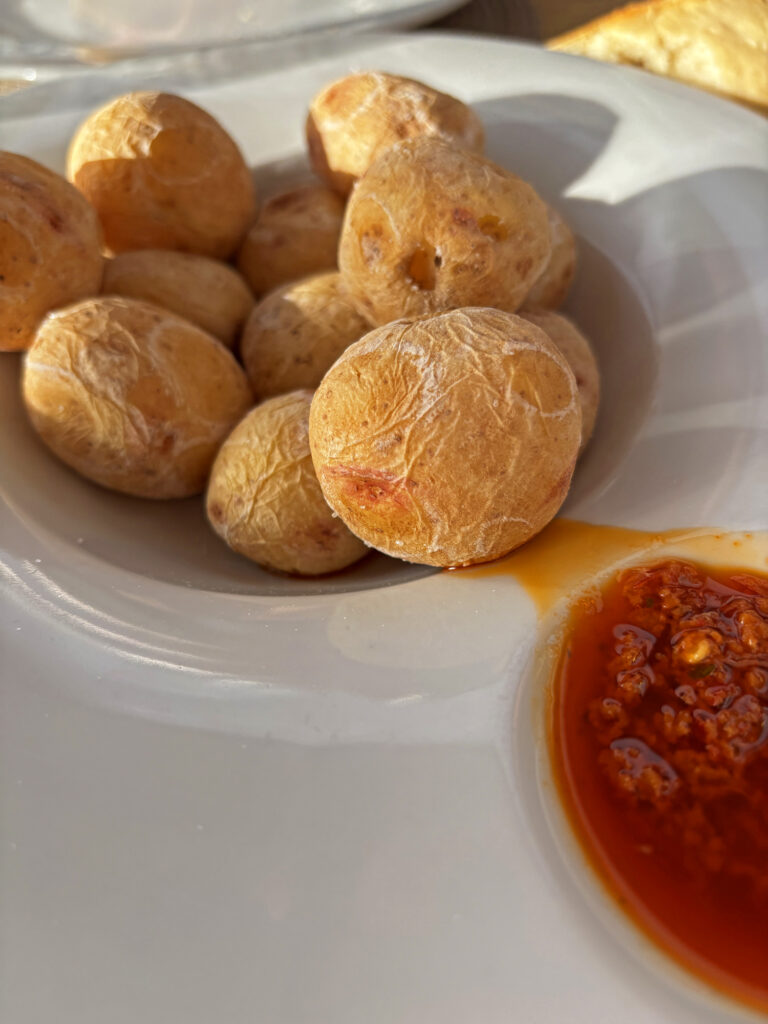 Hungrig bleibt hier niemand – aber überfordert auch keiner. Die Fischrestaurants am Hafen servieren, was der Atlantik bringt: Dorade, Makrele, Tintenfisch. Oft gegrillt, manchmal geschmort, immer frisch.